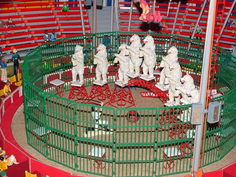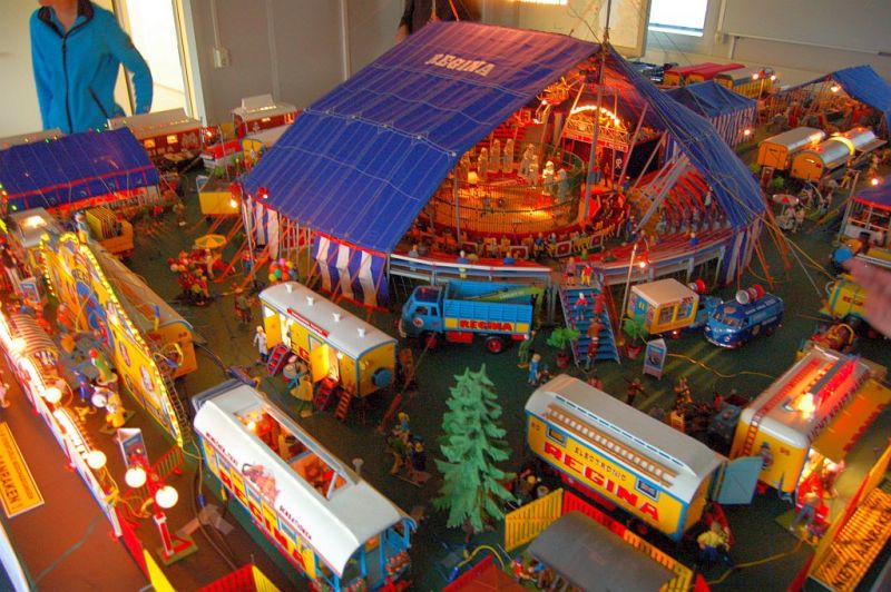 Omdat dit circus toch al gauw een oppervlakte in beslag neemt van zo,n 30 m2 waaromheen ook nog ruimte moet zijn om te kunnen lopen , er eigenlijk camerabewaking dient te zijn en liefst maar 1 in en 1 uitgang , voldoet eigenlijk alleen een museum of een openbaar toegankelijke ruimte aan deze eisen.