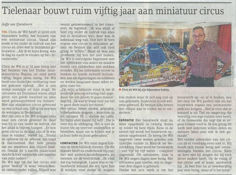 In Februari 2017 startten de voorbereidingen voor een te houden expositie in Augustus , eerst werd er een tafel geconstrueerd van 25 m2 en in Juli startte de daadwerkelijke opbouw van het circus , dat duurde 9 dagen met twee personen , daarna volgde de expositie zelf van 4 weken en vervolgens de afbouw van 3 dagen , tijdens de expo zijn er door verschillende mensen ca 1000 foto,s gemaakt waarvan hier een selectie geplaatst wordt , ook verschenen er artikelen in het blad Circus Models magazine , de Deutsche Circuszeitung en de lokale pers , al met al een groot succes.
