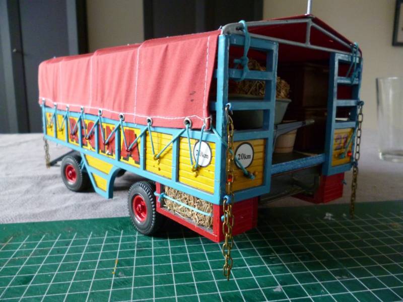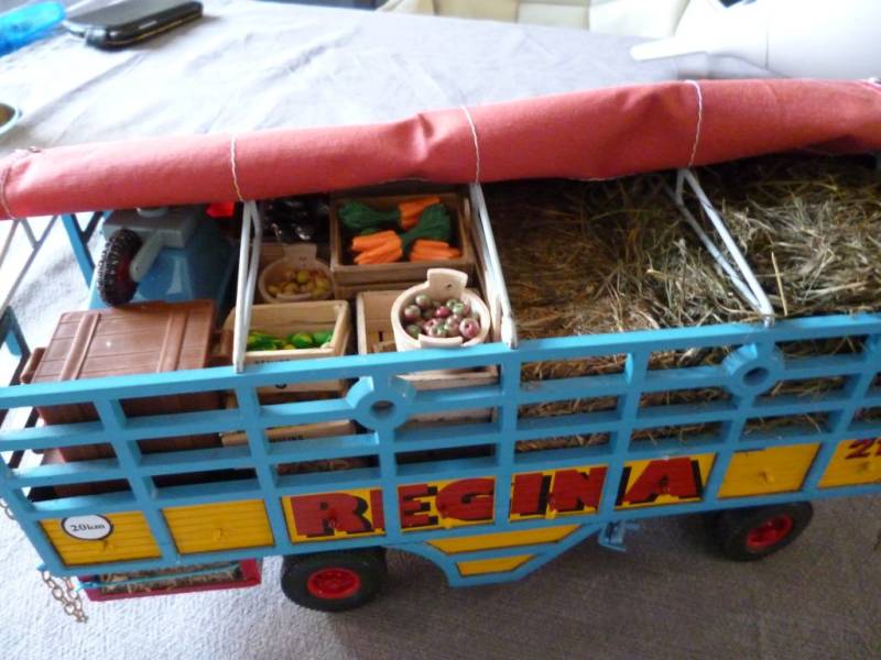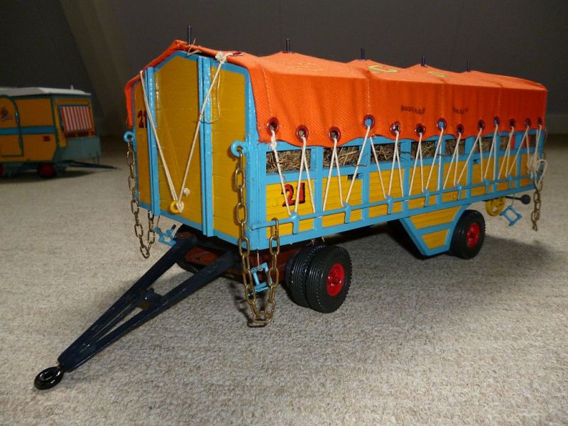 Dieren in een circus moeten net als mensen natuurlijk eten , daarom reizen er meestal 1 of 2 fouragewagens mee , altijd een met hooi en vaak een gesloten wagen met zakken haver en andere diervoeding , afhankelijk van wat voor dieren er zijn .