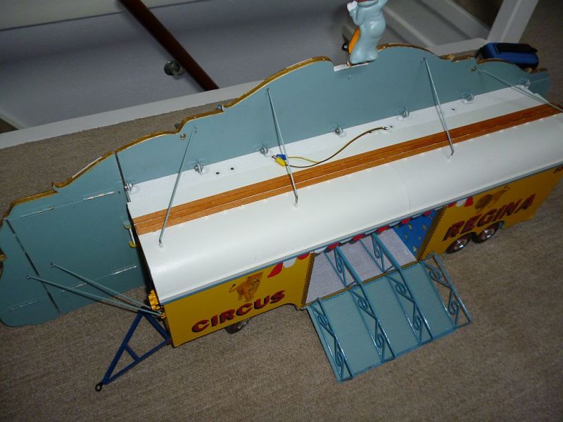 De Front of facade wagen is geheel door mijzelf gebouwd en word tijdens het transport ingeklapt , aangekomen op de speelplaats wordt de wagen uitgeklapt en verder opgebouwd.