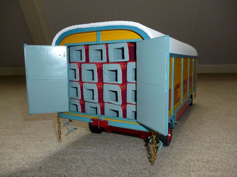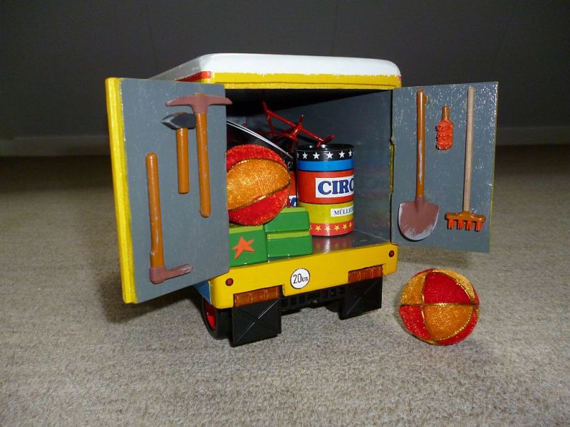 Gesloten pakwagens worden gebruikt om materiaal te transporteren dat kwetsbaar is of droog moet blijven , pistebakken , gordijnen . verlichting , requisieten , inventaris restaurant , orkestbak , garderobe enz.