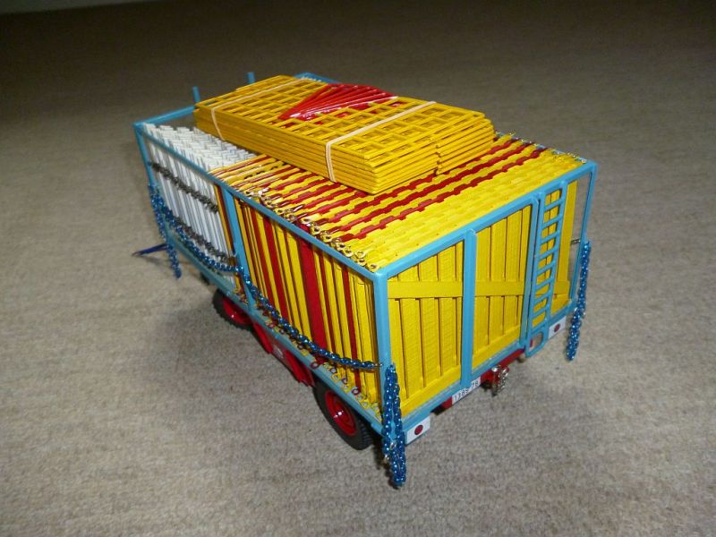 De mastenwagen die ik gebouwd heb is een typische duitse uitvoering , gemaakt van messing profiel met aan de zijkant afneembare rongen zodat de masten er makkelijker afgebeurd kunnen worden.