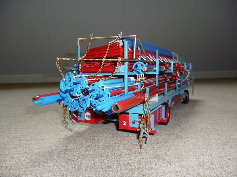 Verder wordt zo,n wagen altijd beladen met de quadrepoles ( stormpalen ) en rondellstangen ( staan rondom de tent ) en onder de wagen hoort een bak met halve kleppen waarin de tentankers opgeborgen worden